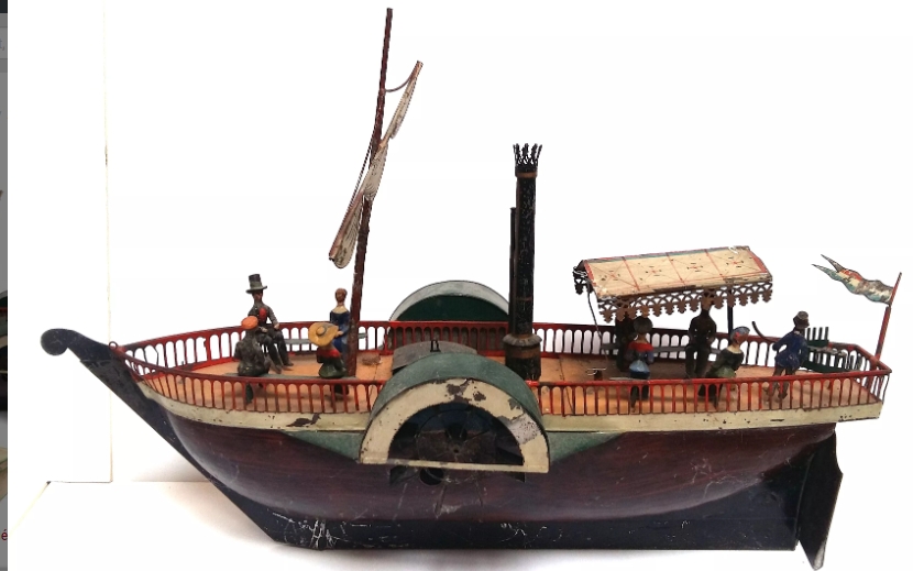 | nce, Heller Coudray : beau paquebot mécanique à deux mâts, quatre cheminées et deux chaloupes. Complet, mais quelques restaurations dont peinture. 33 cm. 500 euros |